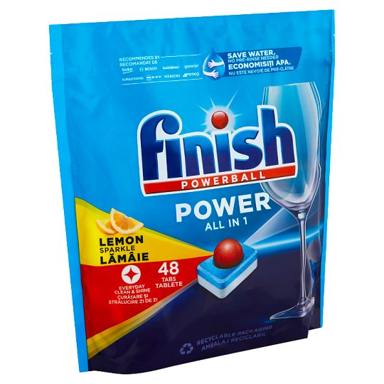 Finish All-in-1 powerball supercharges the tablet which cuts through even the toughest grease for a deep clean. When washing up with a dishwasher, Finish dishwashing tablets deliver powerful dish and glass cleaning in the toughest conditions. The dishwasher tablets are suitable to be used in most dishwashing tasks that involve a dishwasher.