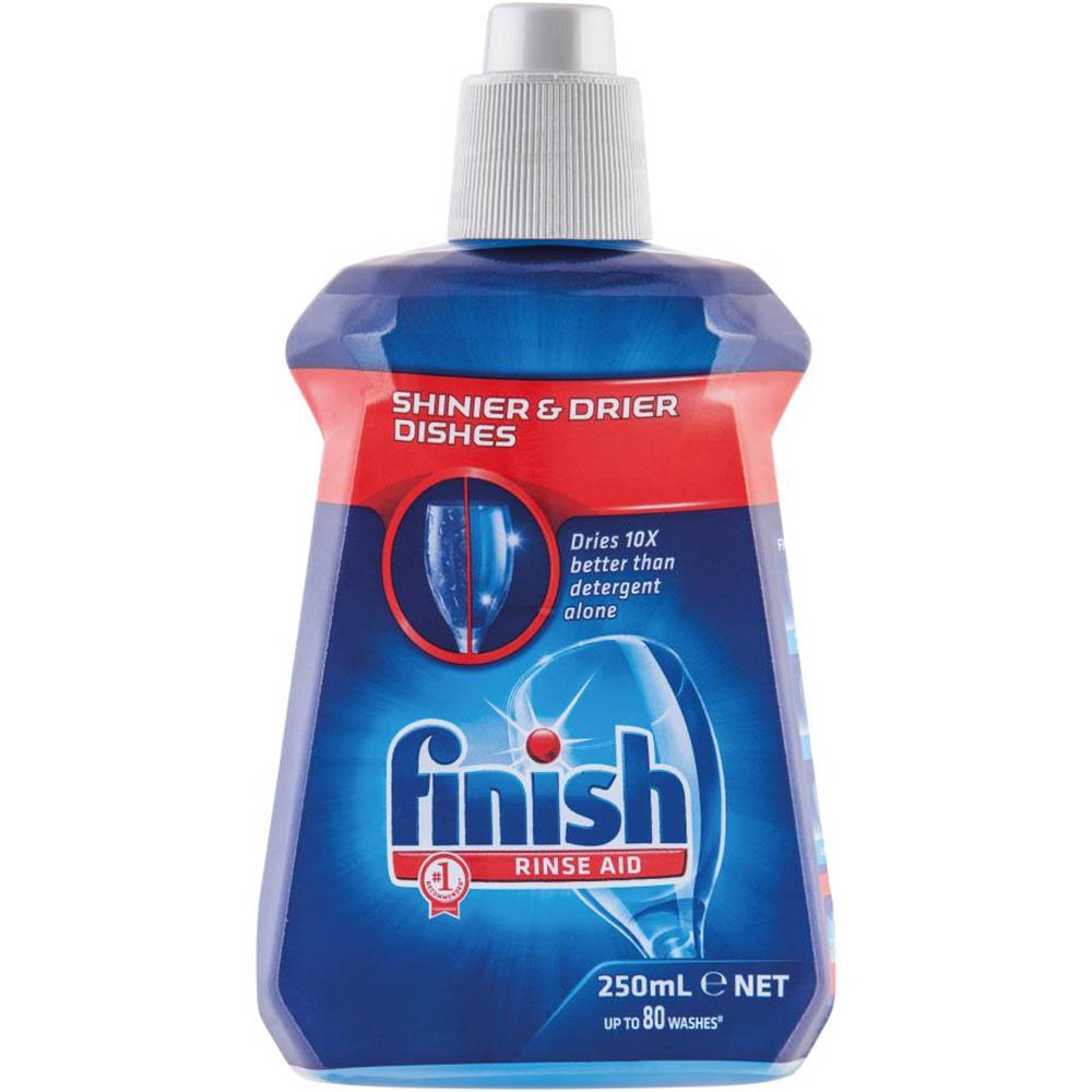 Finish Rinse Aid is a dishwasher additive that is used in the final rinse cycle to improve the drying process and enhance the overall cleanliness of your dishes and glassware. It is formulated to prevent water spots, streaks, and mineral deposits on your kitchenware, leaving them with a brilliant shine.