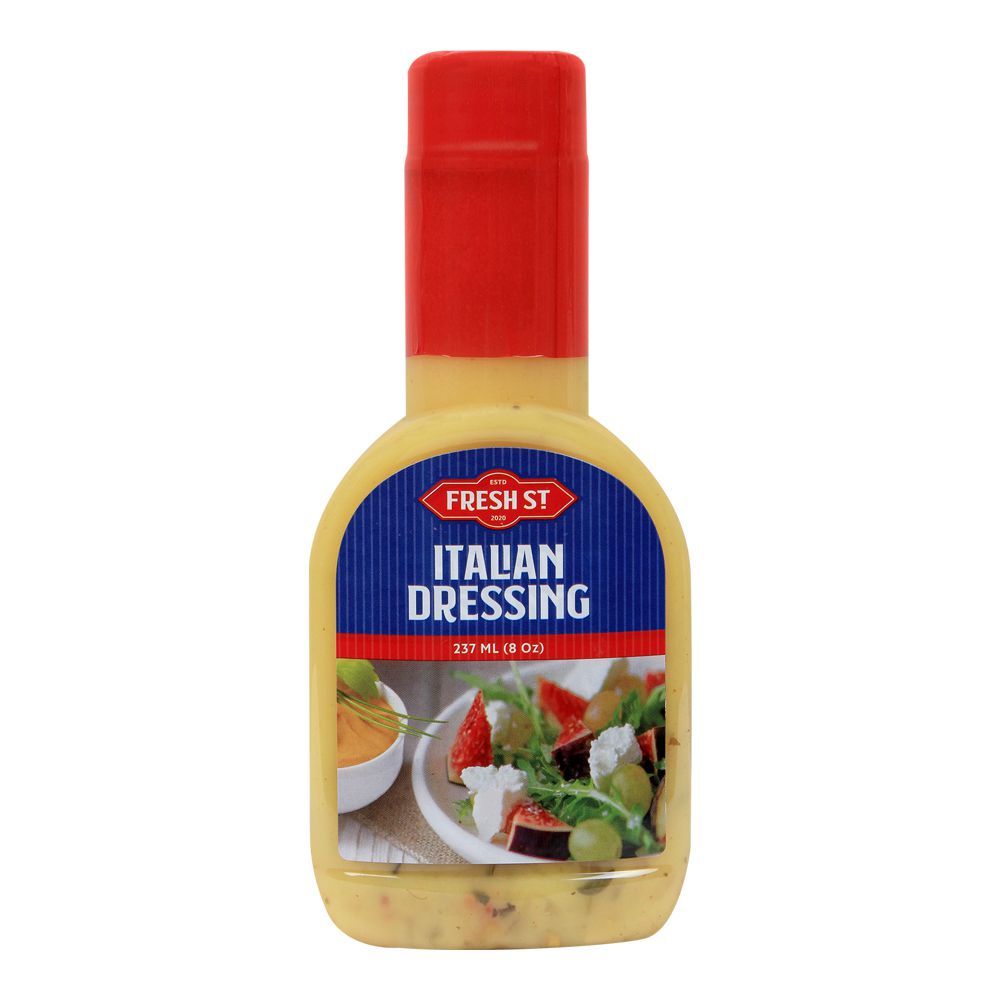 Fresh ST Dressing Italian 237ml At Fresh Dressing Italian, we pride ourselves on our commitment to excellence. Each dressing is meticulously prepared by our skilled team of culinary experts, who bring their passion and expertise to every bottle. We believe that great taste starts with great ingredients, which is why we source the freshest produce and finest herbs and spices to create our dressings. Our Italian dressings are versatile and can be used to enhance a variety of dishes. Whether you're looking to elevate a simple salad, marinate meats, or add a burst of flavor to your favorite pasta dish, Fresh Dressing Italian has the perfect dressing for every occasion. We understand the importance of providing our customers with a product that not only tastes amazing but also meets their dietary preferences. That's why our dressings are made with natural and wholesome ingredients, free from artificial preservatives, colors, and flavors. We are committed to delivering a product that is not only delicious but also aligns with your healthy lifestyle choices. Fresh Dressing Italian is dedicated to providing exceptional customer service. We value our customers and strive to exceed their expectations with every interaction. Whether you have a question about our products or need assistance with your order, our friendly and knowledgeable team is here to assist you. Experience the true taste of Italy with Fresh Dressing Italian. Elevate your meals with our premium dressings and indulge in the authentic flavors that will transport you to the heart of Italy. Discover the difference that Fresh Dressing Italian can make in your culinary creations.