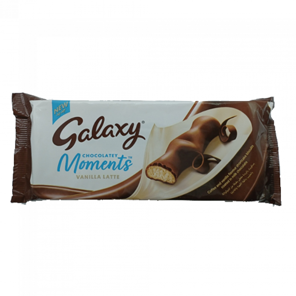 Galaxy Chocolatey Moments Vanilla Latte is a 110g pack of Galaxy chocolates with a delightful vanilla latte flavor.