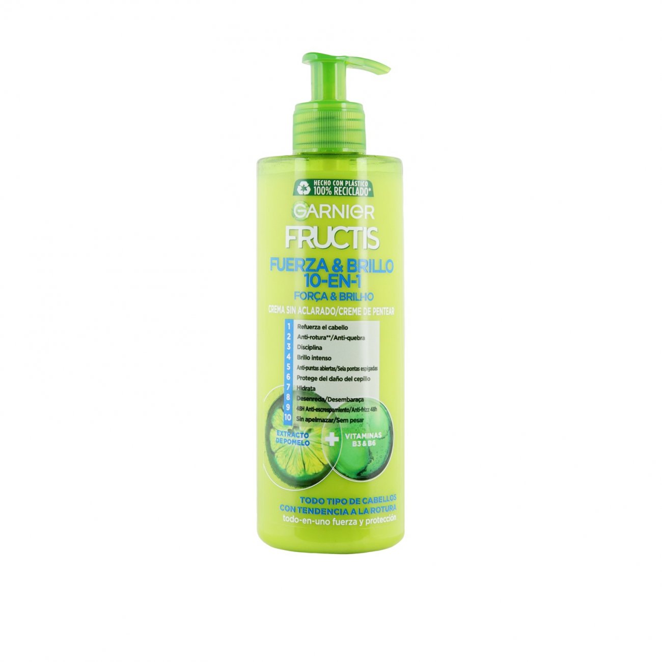 Garnier Fructis Strength & Shine 10 In 1 Styling Cream 400ml consists of a leave-in cream indicated for weakened and dull hair. Without you having to rinse your hair, this product acts to take care of it, leaving it looking much healthier, stronger and shiny. Furthermore, this cream has the particularity of having 10 benefits together in one product. In this case it mainly helps to strengthen the hair while also preventing it from falling out. On the other hand, it disciplines the hair while controlling frizz for up to 48 hours, all without weighing it down and untangling it. Finally, this cream hydrates the hair, prevents the appearance and formation of split ends, protects against damage from brushing and gives a radiant shine. Regarding its formulation, this leave-in cream has Grapefruit Extract and a combination of Vitamins B3 and B6. It is thanks to these ingredients that the hair is really strengthened, protected and full of shine.