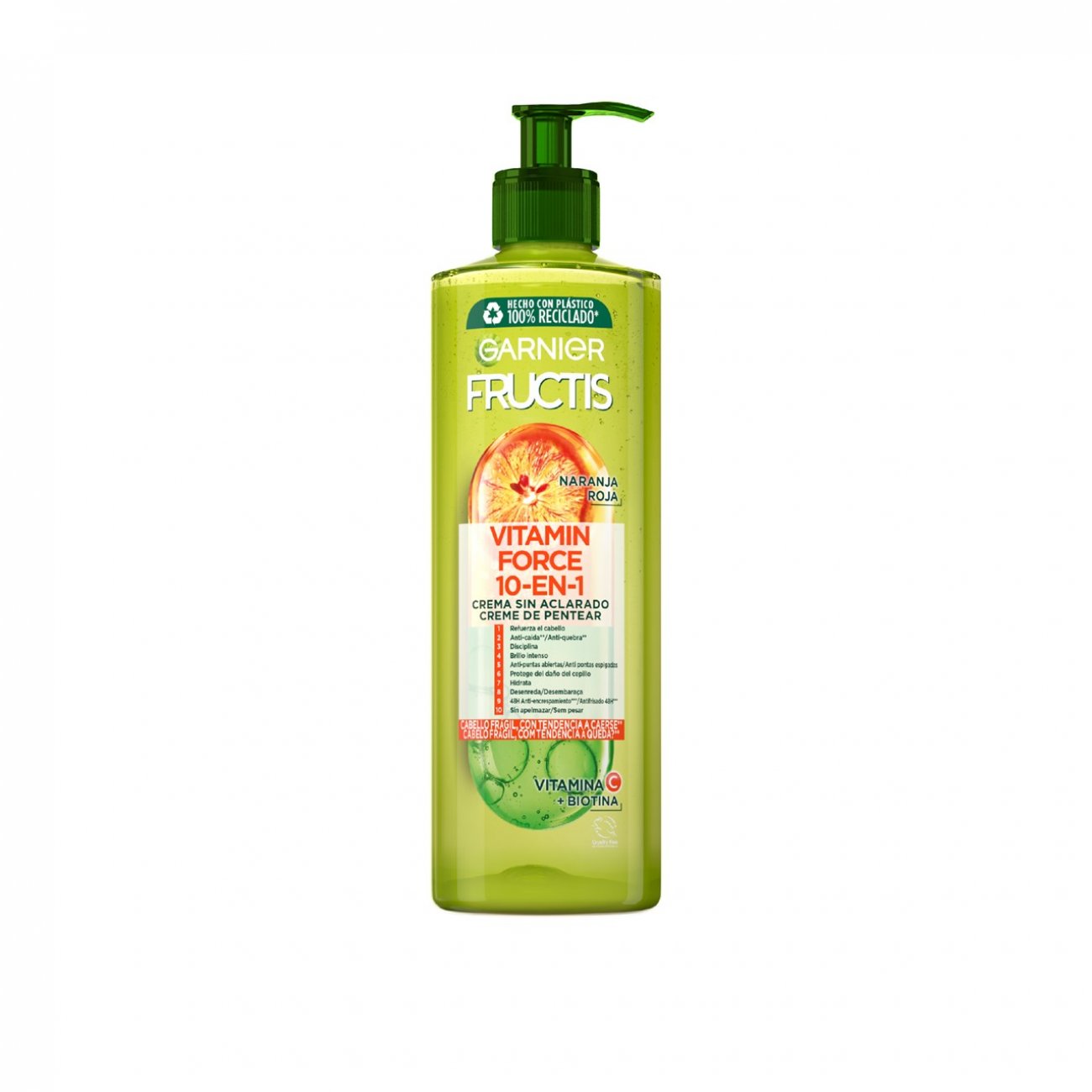 Garnier Fructis Vitamin Force 10 In 1 Styling Cream 400ml is the ultimate all-in-one styling solution for fragile strands that struggle with hair loss. Without requiring rinsing, this product provides ten different benefits - fortifies the hair, anti-breakage, disciplines, increases shine, fights split-ends, protects from brushing damage, hydrates, detangles, prevents frizz for up to 48 hours and does not add weight. Like so, after every application you will enjoy not only healthier looking hair but also strands that are more resilient to damage. All of these benefits are possible thanks to an innovative vegan composition that contains an ingredient super-duo“ Blood Orange and Vitamin C with Biotin. This potent combination uses the properties of both natural ingredients and powerful active components. Its list of results includes a reinforced hair fiber, reduced hair loss and overall healthier strands.
