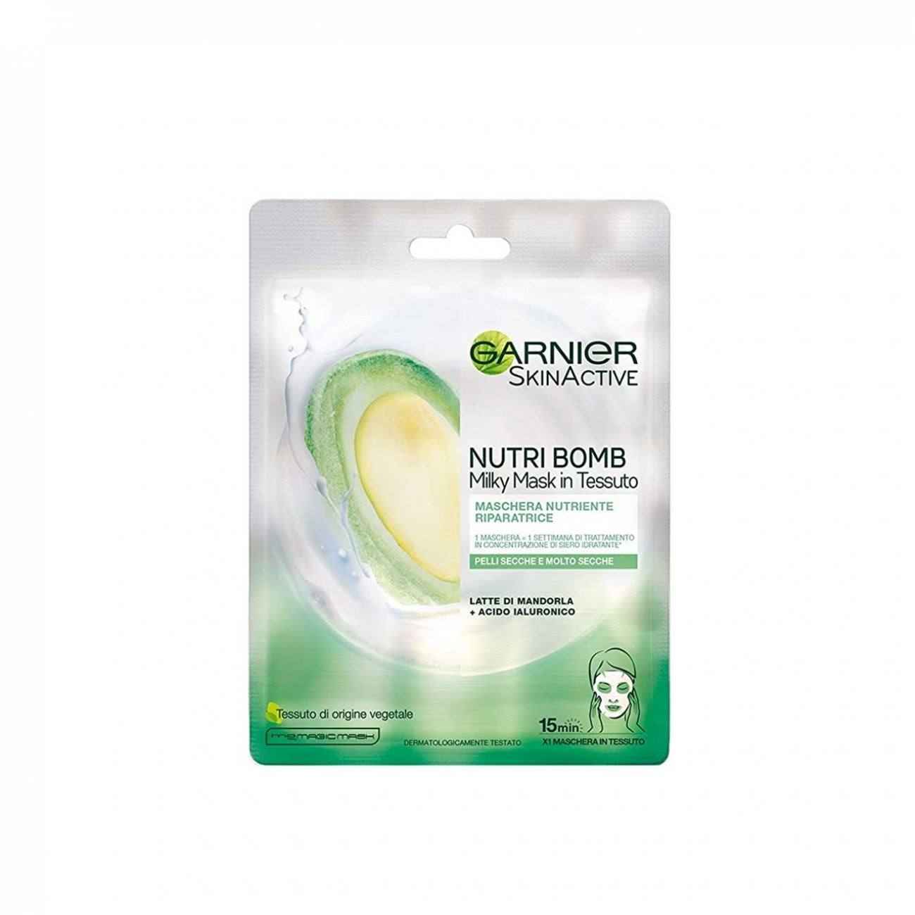 Garnier Skin Active Nutri Bomb Sheet Mask Almond Milk is a nourishing tissue mask that replenishes dry and very dry skin with intense hydration and comfort. The rich formula comes soaked into the sheet mask that instantly soothes dry and dehydrated skin. The ingredients are the secret for a restoring result: Organic almond milk coupled with hyaluronic acid help not only to re-plump but also to smooth and hydrate the skin.