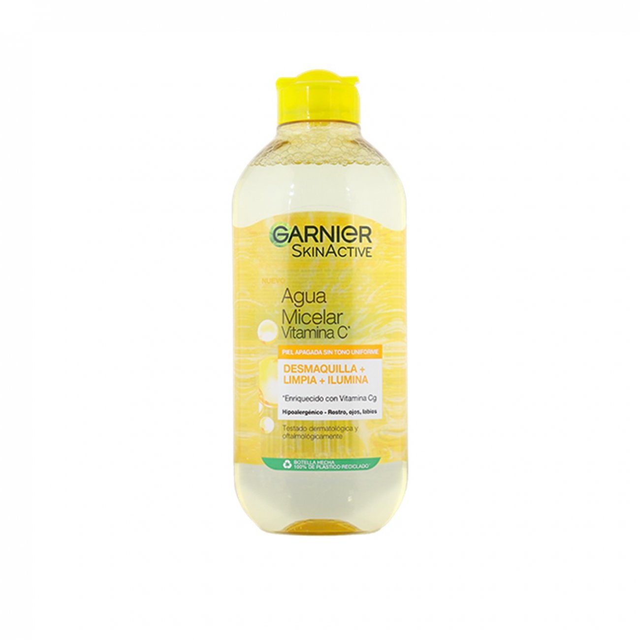 Garnier Skin Active Vitamin C Micellar Water 400ml is a gentle yet efficient cleanser that was specially developed for anyone struggling with dullness, signs of tiredness, or dark spots. As it happens, the Vitamin C Micellar Water resorts to the antioxidant powers of Vitamin C to provide glow-boosting properties that contribute to a brighter and more even complexion. Simultaneously, this composition also contains a unique blend of Micelle Technology and natural oils to intensely cleanse the skin. Like so, the Vitamin C Micellar Water is capable of not only completely removing visible makeup but also eliminating dirt, oil, SPF, pollution residues, and dead skin cells. It does so through a delicate performance that does not require rubbing or pulling and, therefore, does not create irritation. The result After each application, this Micellar Water unveils purified and overall healthier-looking skin, with a beautiful radiance and smooth touch.