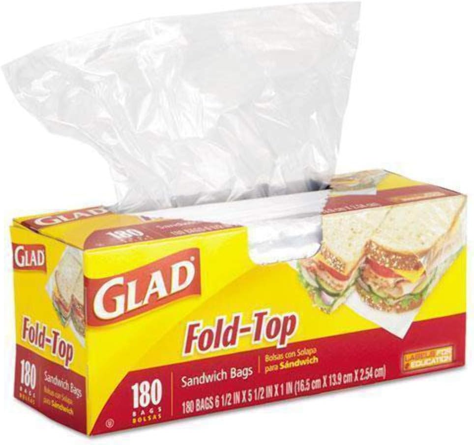Glad Food Storage Bags (C180,Fold Top,Sandwich Bags,16.5cmx14.0cmx2.54cm) Glad Food Storage Bags in the C180 series are fold-top sandwich bags measuring 16.5cm x 14.0cm x 2.54cm. These convenient bags are perfect for storing and preserving sandwiches, snacks, and other small food items. With their secure fold-top closure, you can trust that your food will stay fresh and protected.
