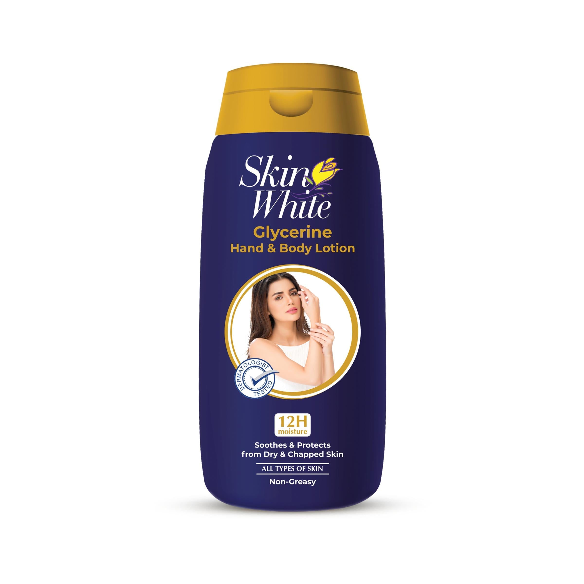 Skin White Glycerina Hand & Body Lotion Soothes & Protects from Dry and Chapped Skin, Locks the natural moisture inside the skin but additionally provides hydration and nourishment and the non-greasy formula relieves dry, rough, and itchy skin.