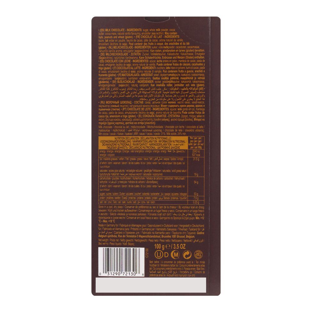 The Godiva Milk 31% Chocolate Bar is a chocolate lover's dream come true. The chocolate is made from the finest cocoa beans, sourced from the best cocoa-growing regions in the world. The beans are carefully roasted to bring out their full flavor and aroma, and then blended with premium milk to create a smooth and creamy texture. The chocolate bar is then molded into a perfect rectangular shape, with each piece weighing 100 grams. The packaging is elegant and sophisticated, with the iconic Godiva logo prominently displayed on the front. When you take a bite of the Godiva Milk 31% Chocolate Bar, you'll be transported to a world of pure indulgence. The chocolate melts in your mouth, releasing a rich and creamy flavor that is both sweet and intense. The cocoa content is perfectly balanced, so you get just the right amount of chocolate flavor without it being too overpowering. The Godiva Milk 31% Chocolate Bar is perfect for any occasion, whether you're looking for a special treat for yourself or a gift for someone special. It's a timeless classic that embodies luxury and sophistication, and it's sure to impress even the most discerning chocolate connoisseur. In conclusion, if you're looking for a chocolate bar that is both delicious and indulgent, look no further than the Godiva Milk 31% Chocolate Bar. It's a true masterpiece of chocolate craftsmanship, and it's sure to satisfy your sweet tooth and elevate your chocolate experience to new heights.