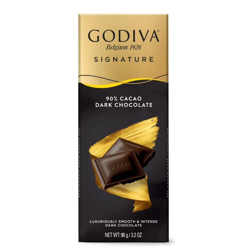 Godiva Signature Caco Dark Chocolate is a 90g bar of premium dark chocolate with rich cocoa flavor and the signature excellence of Godiva.
