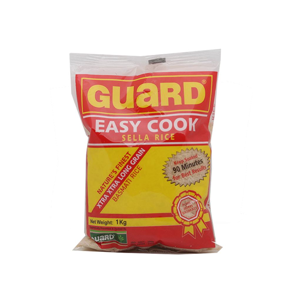 Guard Easy Cook Parboiled Rice is characterized for its extra-long grain, unique aroma, non-stickiness, and exceptional quality. Keep rice dry at all times - add a couple of cloves to prevent moisture.
