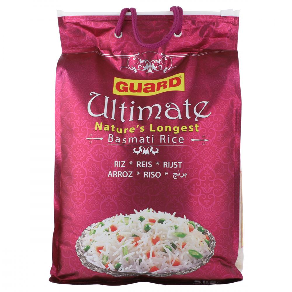 Guard Ultimate Basmati Rice is a top-tier variety of basmati rice, known for its exceptional quality, long grains, and delightful aroma. It is carefully cultivated, harvested, and processed to preserve its unique characteristics. Basmati rice is characterized by its long, slender grains, which elongate further during cooking. This gives it an elegant appearance and a distinct texture.