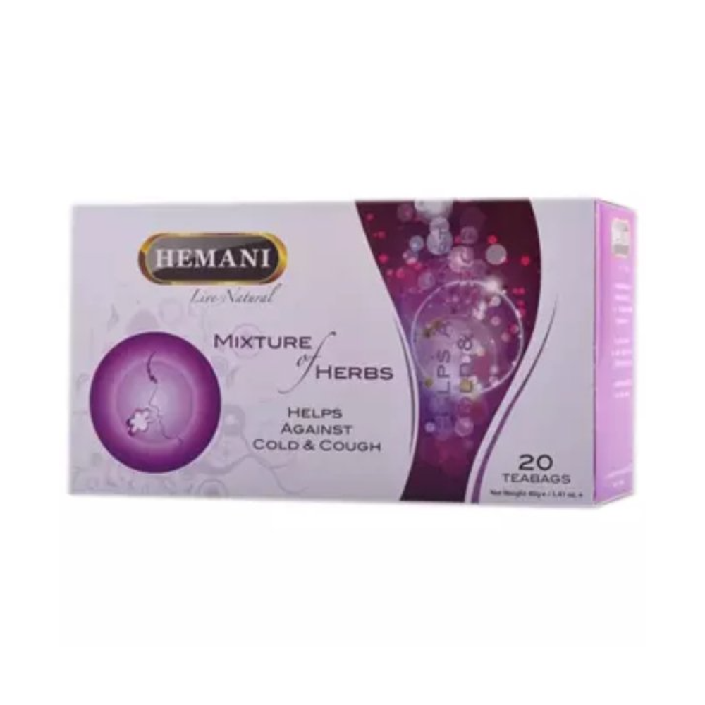 This Hemani Tea Cold & Cough Mixture of Herbs is an all-natural blend of herbs designed to soothe and heal common colds and coughs. Each bag contains 20 individually wrapped teabags, each containing 40g of herbs. Enjoy the natural benefits...
