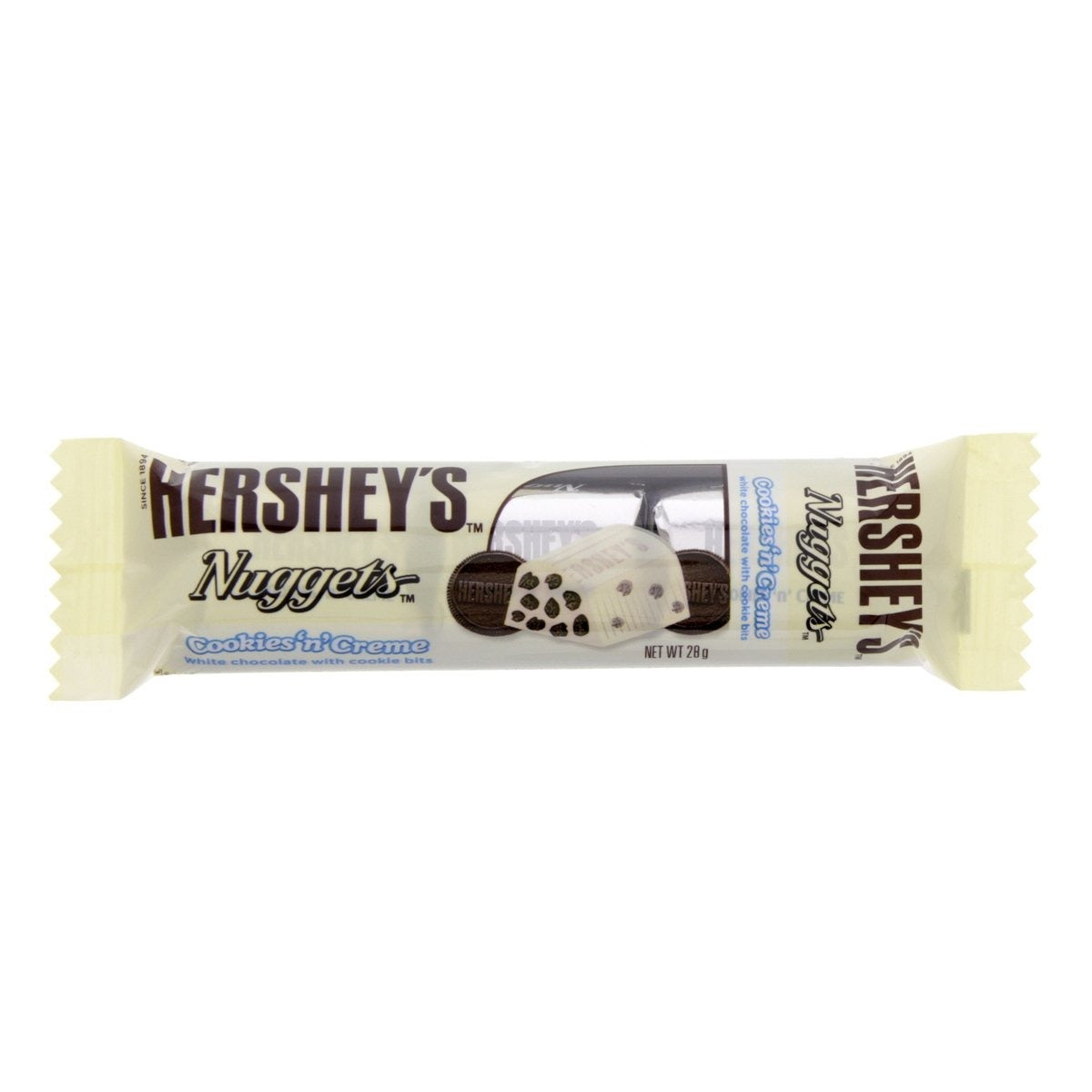 The Hershey's Nugget Cookies 'n' Cream Bar is a delightful treat that combines the classic flavors of creamy white chocolate with crunchy chocolate cookie bits. This 28g bar offers a perfect balance of sweet and crunchy in each bite, making it a convenient and indulgent snack for satisfying your chocolate cravings on the go. Enjoy the iconic Hershey's taste in a convenient and portable size.