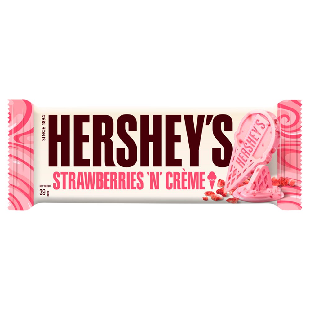 Hershey's Strawberry N Cream is a delightful chocolate bar that combines the sweetness of strawberries and the creaminess of white chocolate. It's a sweet and fruity treat that's perfect for satisfying your cravings for something both creamy and fruity in a convenient 39-gram size.