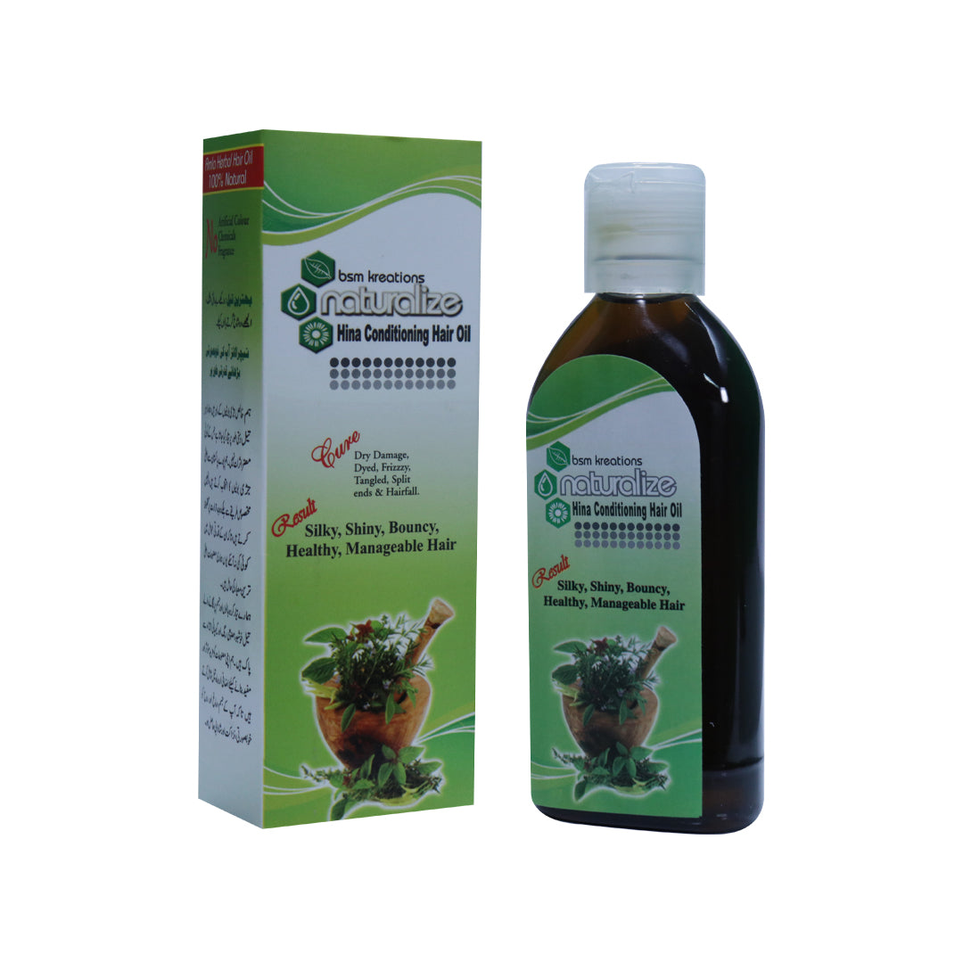 HINA CONDITIONING HAIR OIL Naturalize Hina Conditioning Hair Oil is known for nourishing, moisturizing and protecting hair. This product is beneficial to relieve dry scalp and hair while stimulating follicles for better hair growth. Alongside, it adds colour depth and shine to all hair colors.