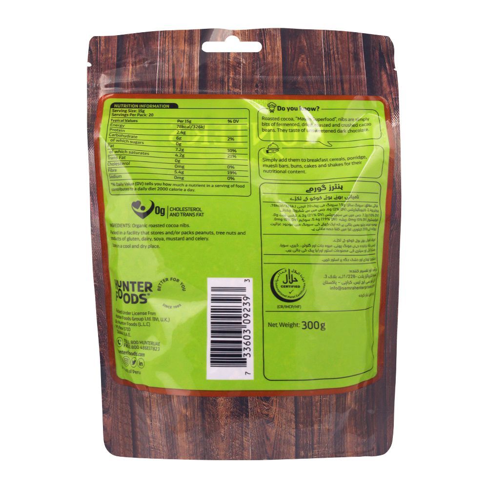 Hunters Gourmet's Organic Roasted Cocoa Nibs, a premium product weighing 300 grams. These cocoa nibs are carefully selected and roasted to perfection, ensuring a rich and intense flavor. Made from organic cocoa beans, they are free from any harmful chemicals or additives. These nibs are perfect for adding a crunchy texture to your desserts, smoothies, or as a healthy snack. Hunters Gourmet takes pride in providing high-quality products that are not only delicious but also good for your health. Try our Organic Roasted Cocoa Nibs today and experience the indulgence of pure, organic cocoa.