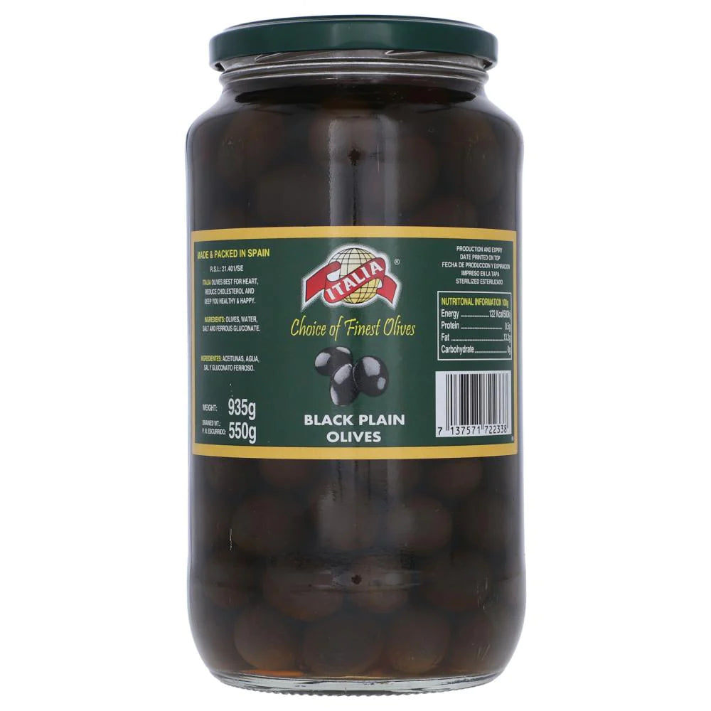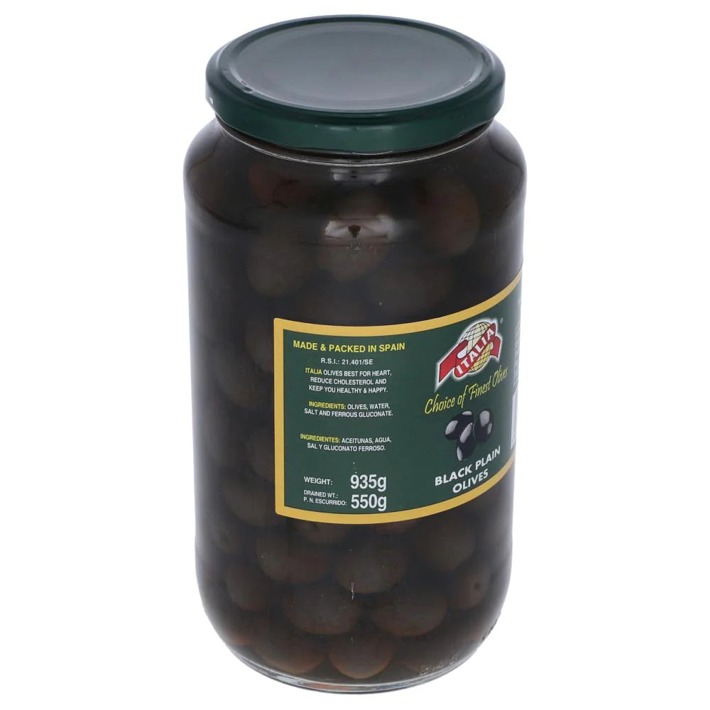 Olives Variety: Italia Black Plain Olives are known for their distinct dark color and rich, savory taste. They are often used in Mediterranean and Italian cuisine for their robust flavor.