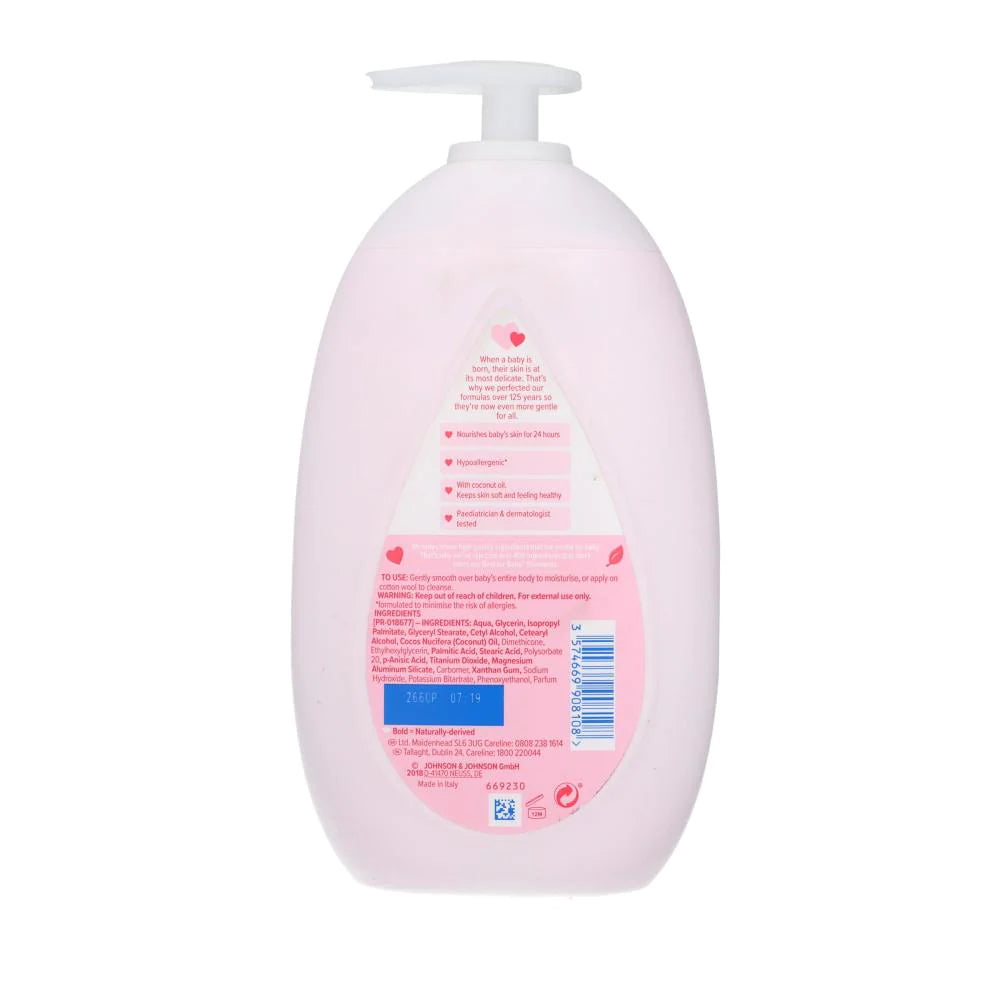 Johnson's Baby Lotion in a convenient 500ml size, perfect for busy parents who want to ensure they always have enough lotion on hand for their little one's skincare needs. This larger size bottle allows for longer use and less frequent repurchasing, making it a practical choice for families. Our gentle and nourishing lotion is specially formulated to provide optimal care for your baby's delicate skin. We understand that your baby's skin is sensitive and requires extra care, which is why we have created a lotion that is gentle yet effective. Enriched with essential moisturizers, our lotion effectively hydrates and protects your baby's skin, leaving it feeling soft and smooth. We know that safety is a top priority for parents, which is why our dermatologist-tested formula is hypoallergenic and free from harmful chemicals. You can trust that our lotion is safe and gentle for your little one's delicate skin. We have carefully selected ingredients that are known for their moisturizing and nourishing properties, ensuring that your baby's skin receives the best care possible. In addition to its moisturizing benefits, our lotion also provides a soothing and comforting sensation with its mild fragrance. The gentle scent promotes a calm and relaxing environment for your baby, helping them feel at ease during their skincare routine. The subtle fragrance is not overpowering, ensuring that it does not irritate your baby's sensitive nose. When it comes to your baby's skincare, trust Johnson's Baby Lotion for superior quality and safety. We have been a trusted brand for generations, and our commitment to providing the best skincare products for babies remains unwavering. Our lotion meets the highest standards of quality and safety, giving you peace of mind knowing that you are using a product that has been thoroughly tested and trusted by parents worldwide. Choose Johnson's Baby Lotion in the convenient 500ml size for a gentle and nourishing skincare experience for your baby. With its optimal care, essential moisturizers, hypoallergenic formula, mild fragrance, and commitment to quality and safety, our lotion is the perfect choice for your little one's delicate skin. Give your baby the care they deserve with Johnson's Baby Lotion.