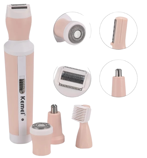 The "Kemei Hair Removal Trimmer for Girls" is a compact and versatile grooming device designed specifically for removing unwanted hair from various parts of the body, providing a quick and effective solution for hair removal. Here are some key features and benefits of this trimmer: