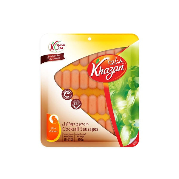 Khazan Cocktail Sausages Chicken 250g: Khazan Cocktail Chicken Sausages, available in a 250g pack, offer a delightful twist on classic cocktail sausages. Made from succulent chicken, these bite-sized sausages are perfect for entertaining guests or enjoying as a snack. Their tender and flavorful profile makes them a versatile choice for various occasions, ensuring a tasty treat for everyone.