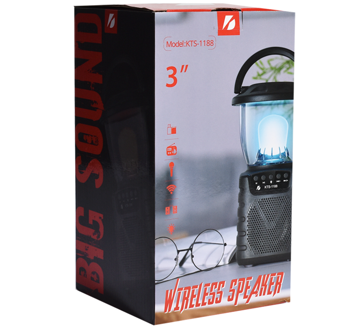 1. Compact Design: The KTS-1188 speaker features a compact and lightweight design, making it highly portable. Its small size allows you to carry it with ease, making it suitable for outdoor activities, travel, and on-the-go entertainment.