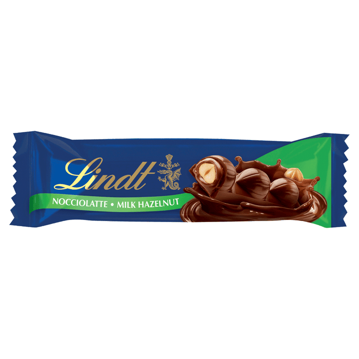 Lindt Milk Hazelnut Stick in Blue packaging is a 35g treat that features the renowned Lindt milk chocolate combined with the delicious crunch of hazelnuts.
