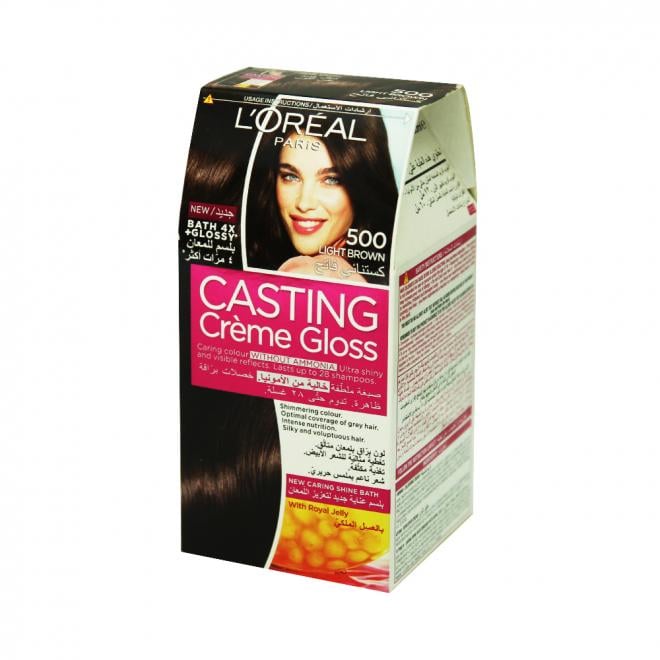 Ammonia free hair color cream - Cover grey hair - Visible shiny reflects for up to 28 shampoos - Reusable Bath of Brilliance conditioner with Royal Jelly (60ml) - 4x more glossy hair First grey hair Don't panic Succumb to Casting's irresistible ultra brilliant and visible reflects. Blends away first grey hair for a natural-looking color that lasts up to 28 shampoos. 4 times more glossy hair thanks to its new reusable bath of brilliance conditioner enriched with Royal Jelly (60ml). Intense nutrition for satin-soft voluptuous easy to detangle hair : the perfect match for long to very long hair.
