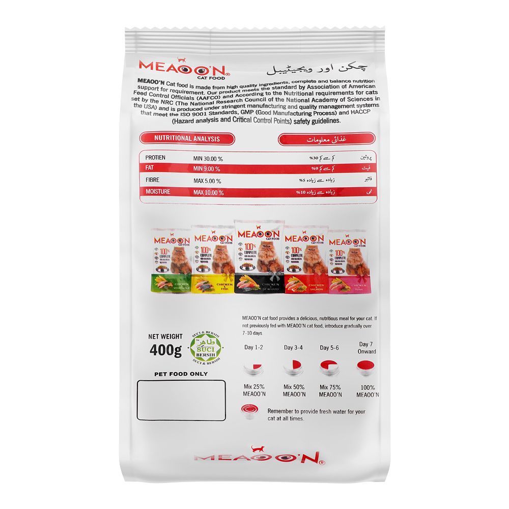 Give your adult cat the nutrition they deserve with Miaoon Adult Cat Food Chicken & Salmon 400g. Made with love and care, this cat food offers a delightful combination of succulent chicken and flavorful salmon to tantalize your feline's taste buds. Crafted with the finest ingredients, it provides a complete and balanced diet to support your cat's health and vitality. Packed with essential nutrients, including protein, vitamins, and minerals, it promotes lean muscle growth and supports the immune system. Plus, the 400g size is perfect for easy storage and freshness. Pamper your cat with the goodness of Miaoon Adult Cat Food Chicken & Salmon 400g.