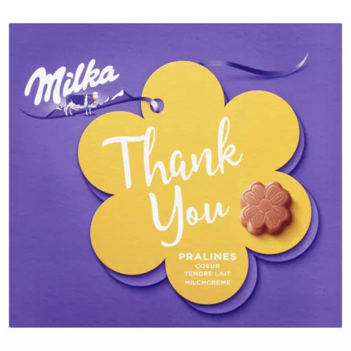 Milka Chocolate Thank You Milk Filling is a 110g chocolate bar with a message of gratitude, filled with creamy milk chocolate.