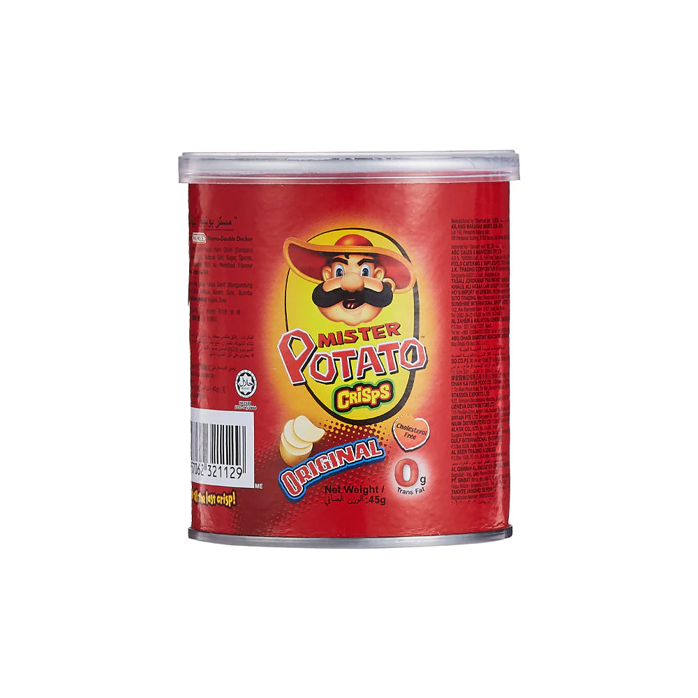 Mister Potato Crisps Original 45g: The timeless classic in a perfectly snack-sized package! Enjoy the pure, unadulterated potato flavor and satisfying crunch of Mister Potato's Original Crisps in this convenient 45g pack. A classic snack that never goes out of style.