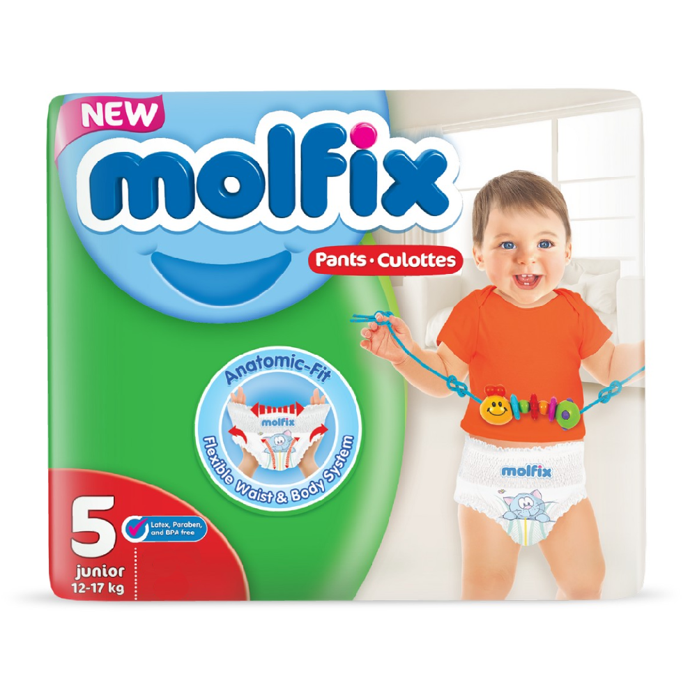 Molfix Baby Diapers provide ease of use The New Molfix Comfort Fix instantly absorbs and retains any fluid and keeps the skin dry. It ensures freedom of movement thanks to its anatomical structure and elastic sidebands. Also, it is skin-friendly!