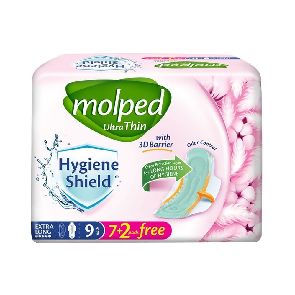 Molped Ultra Thin Sanitary Pad Extra Long are designed for superior protection during heavy flow days. With up to 25% greater absorbency than regular pads, it offers superior protection and comfort. The 9pc pack ensures that you are always covered.