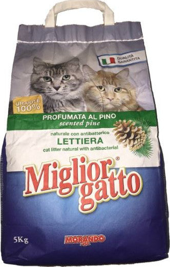 Morando MigliorGatto Cat Litter Scented Pine, in a 5kg bag, is a high-quality cat litter with a pleasant pine scent. It helps control odors and provides a comfortable environment for your cat.