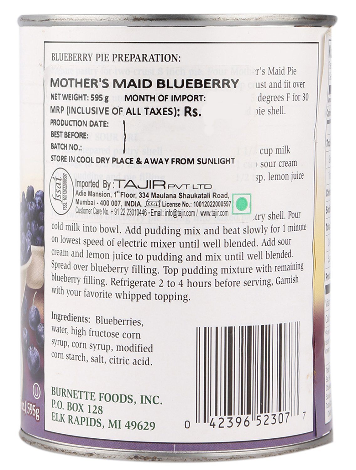 Mother Maid Pie Filling Blueberry is a product designed for making blueberry pies and other desserts. Here's some information about this product:
