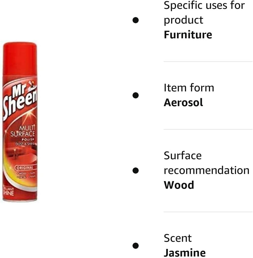 Mr. Sheen Multi Surface Polish Original is a household cleaning product used to clean and polish various surfaces in the home. Here's some information about this product:
