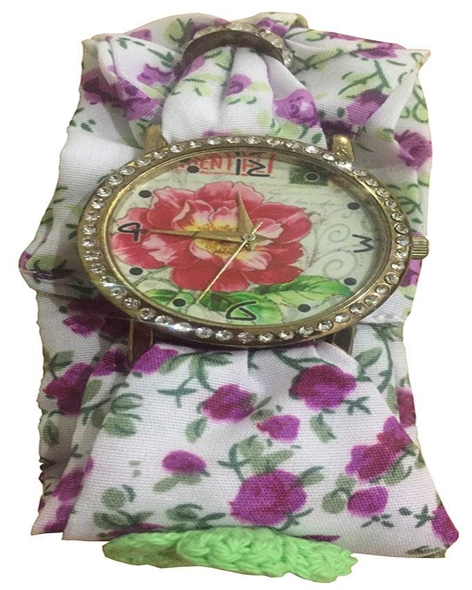 Multi Girls Floral Cloth Casual Party Analog Watch