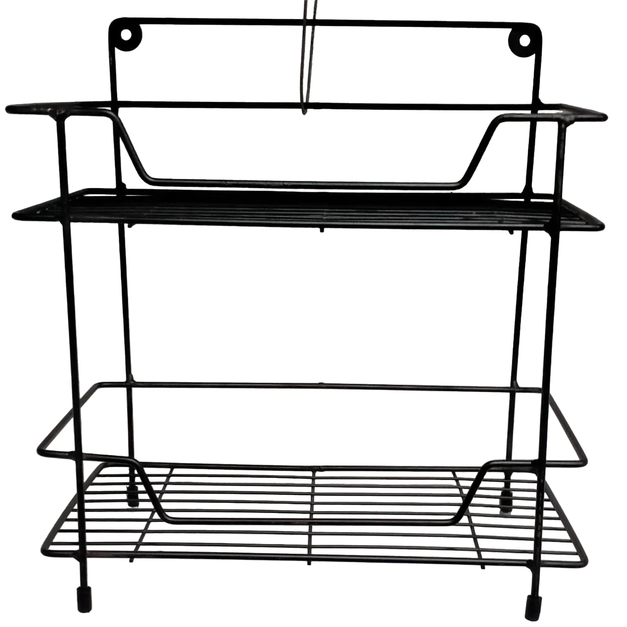 This rack organizer has enough space to hold your daily products. It is perfect storage solution for any room of wall or counter shelf in the bedroom, kitchen, office, dorm, kitchen, living room. You can place your shower gel, shampoo, conditioner, shaving cream, soap and body lotion on the two shower caddies. It is also great for kitchen spices, oil, bottle etc. No drilling and no damage to wall.
