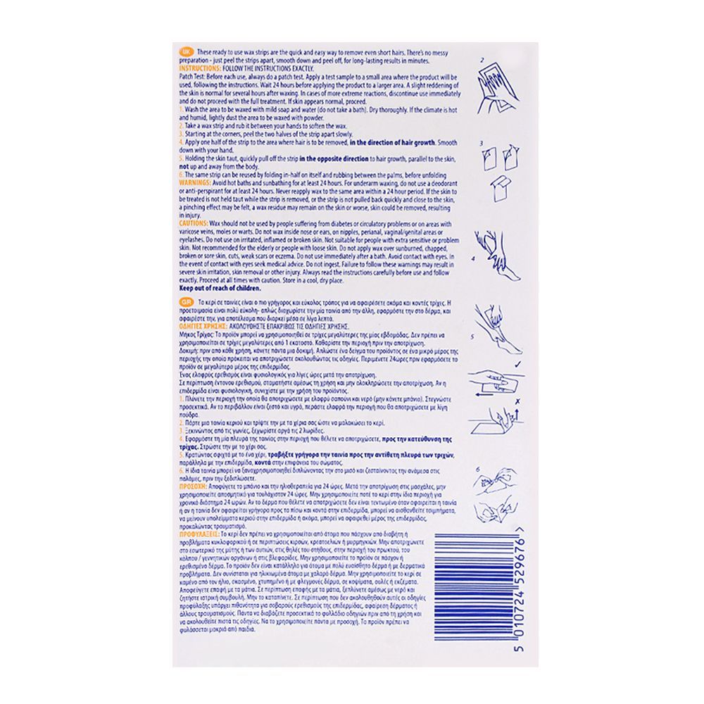 Product Type: This is a package of wax strips, specifically formulated for body hair removal. Wax strips are pre-coated with wax and are designed to be applied to the skin to remove unwanted hair.