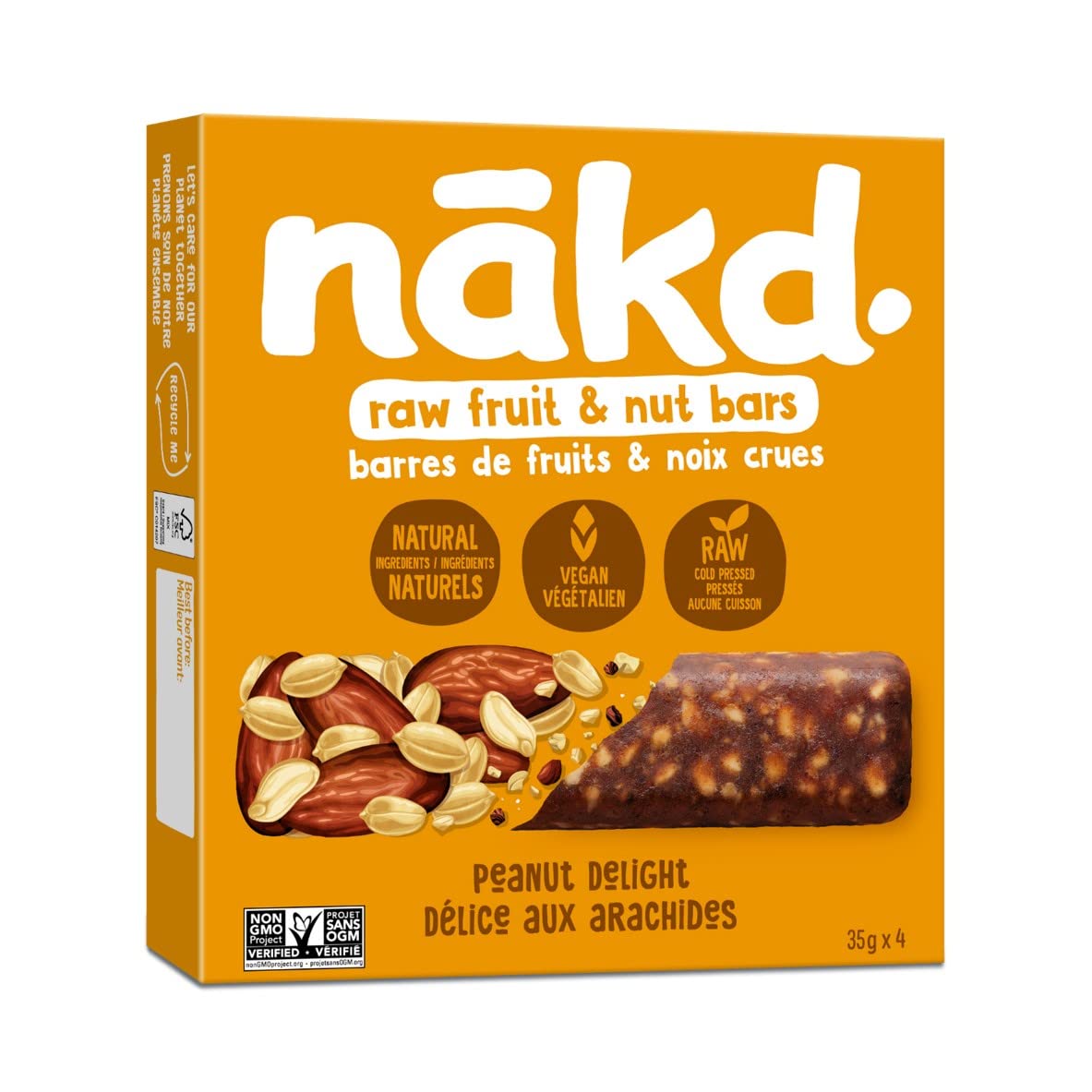 Nakd Peanut Delight Fruit & Peanut Bars come in a pack of 4 bars, each 35g, providing a wholesome blend of fruit and peanuts for a satisfying and nutritious snack.