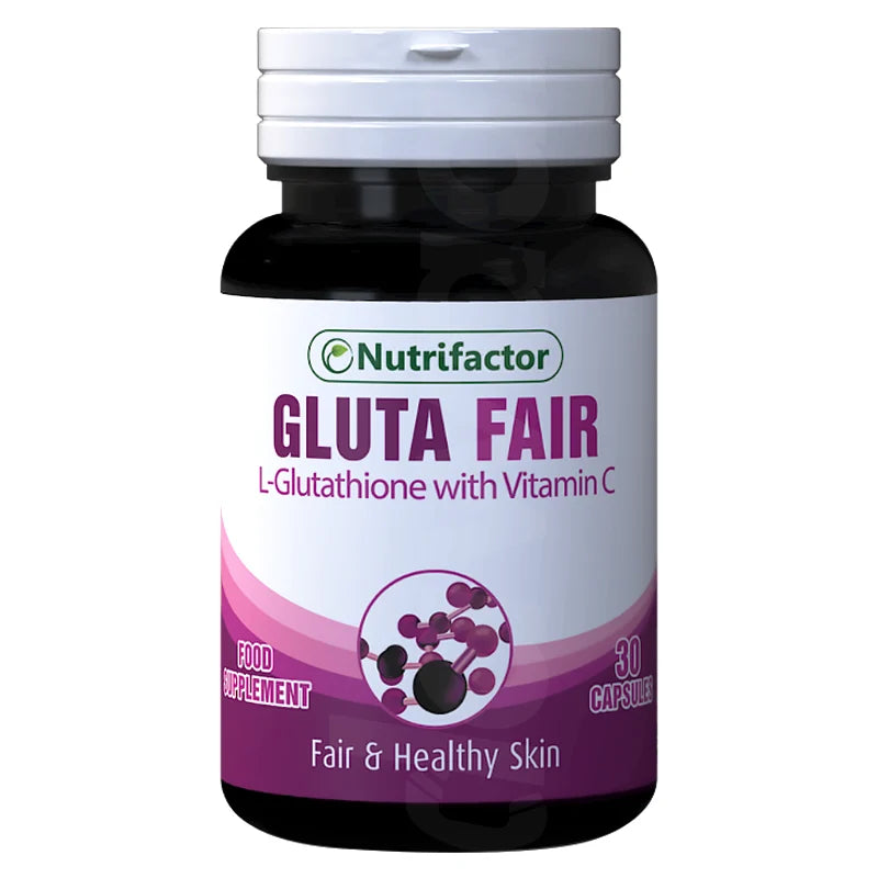 Helps to lighten dark spots and reduce the aging of skin ; Effective in maintaining a healthier skin with a radiant tone ; Helps to reduce oxidative stress ; Assists in improving liver detoxifying action.PRODUCT INFORMATION : Nutrifactor Gluta Fair is a dietary supplement which contains L-glutathione and Vitamin C (ascorbic acid), both of these are strong antioxidants that help to reduce oxidative stress in body ; L-Glutathione is a master antioxidant which supports body defense against free radicals which helps to stop premature aging of cells. It also helps to detoxify toxins from the body ; Vitamin C helps in collagen formation which is important to keep skin young and healthy, it is also effective in maintaining skin tone and radiance.DIRECTIONS : Take 2 capsules daily as a food supplement with meal or as directed by a healthcare professional. Do not exceed the recommended daily dose.