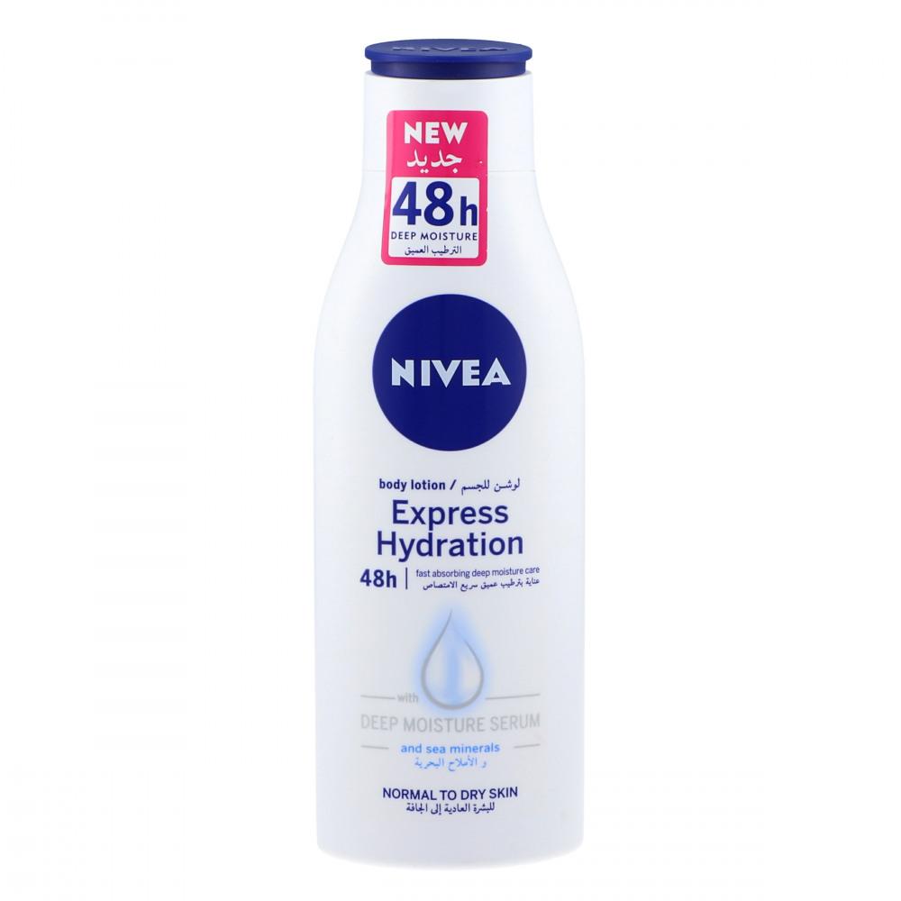 Nivea Body Lotion Express Hydration 250ml: Nivea Body Lotion Express Hydration, with a generous 250ml size, provides rapid and intensive moisture for your skin. Its lightweight formula is absorbed quickly, leaving your skin feeling deeply hydrated without any greasy residue.