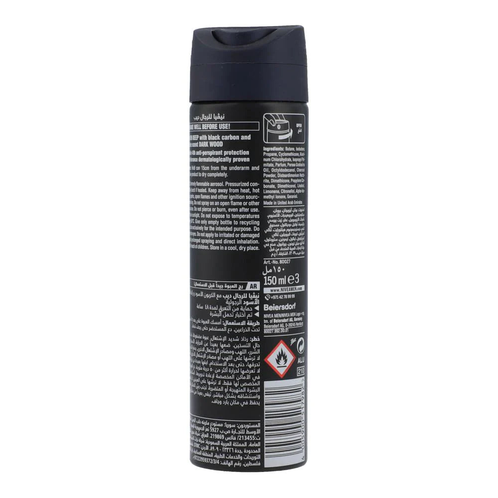 The Nivea Men Deep Body Spray Dark Wood is the perfect addition to any man's grooming routine. With its sophisticated and invigorating fragrance, this body spray is designed to elevate your daily grooming experience. The 150ml bottle ensures that you have enough product to last you for a long time, so you can enjoy the refreshing scent throughout the day. The scent of the Nivea Men Deep Body Spray Dark Wood is truly captivating. With its blend of dark wood notes, it exudes a sense of masculinity and elegance. The fragrance is not overpowering, but rather subtle and refined, making it suitable for any occasion. Whether you're heading to the office or going out for a night on the town, this body spray will leave you feeling confident and revitalized. One of the best features of this body spray is its long-lasting formula. Unlike other fragrances that fade away after a few hours, the Nivea Men Deep Body Spray Dark Wood will stay with you all day long. This means that you can go about your day with the assurance that you will still smell fresh and clean, no matter what activities you engage in. The convenient spray bottle makes application a breeze. Simply press down on the nozzle and a fine mist of fragrance will be released, enveloping your body in its captivating scent. The spray bottle is also compact and travel-friendly, so you can easily take it with you wherever you go. Overall, the Nivea Men Deep Body Spray Dark Wood is a must-have for any man who wants to add a touch of sophistication to his grooming routine. Its long-lasting and refreshing scent, combined with its convenient spray bottle, make it an essential addition to your daily regimen. Experience the allure of the Nivea Men Deep Body Spray Dark Wood and embrace a new level of sophistication in your personal care routine.