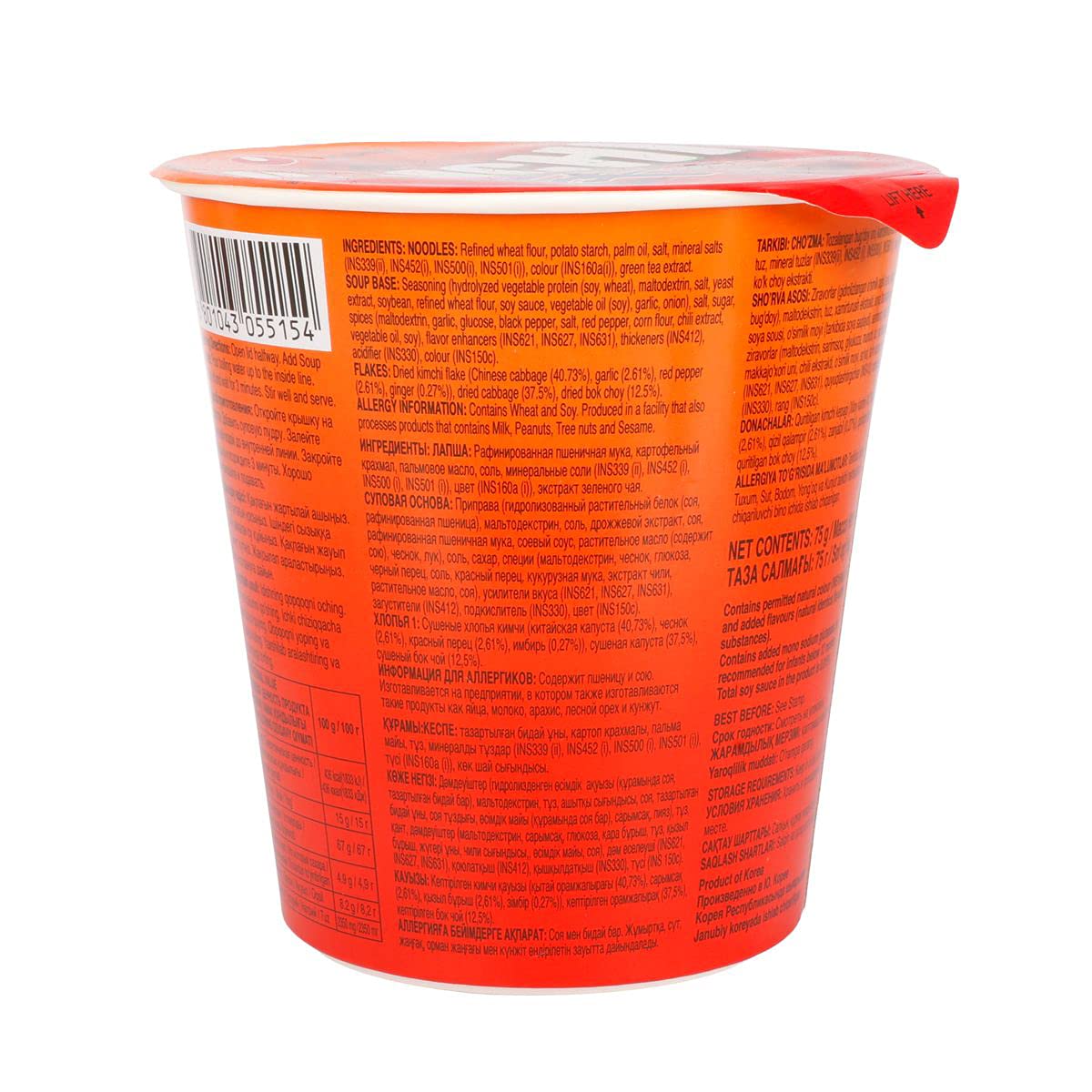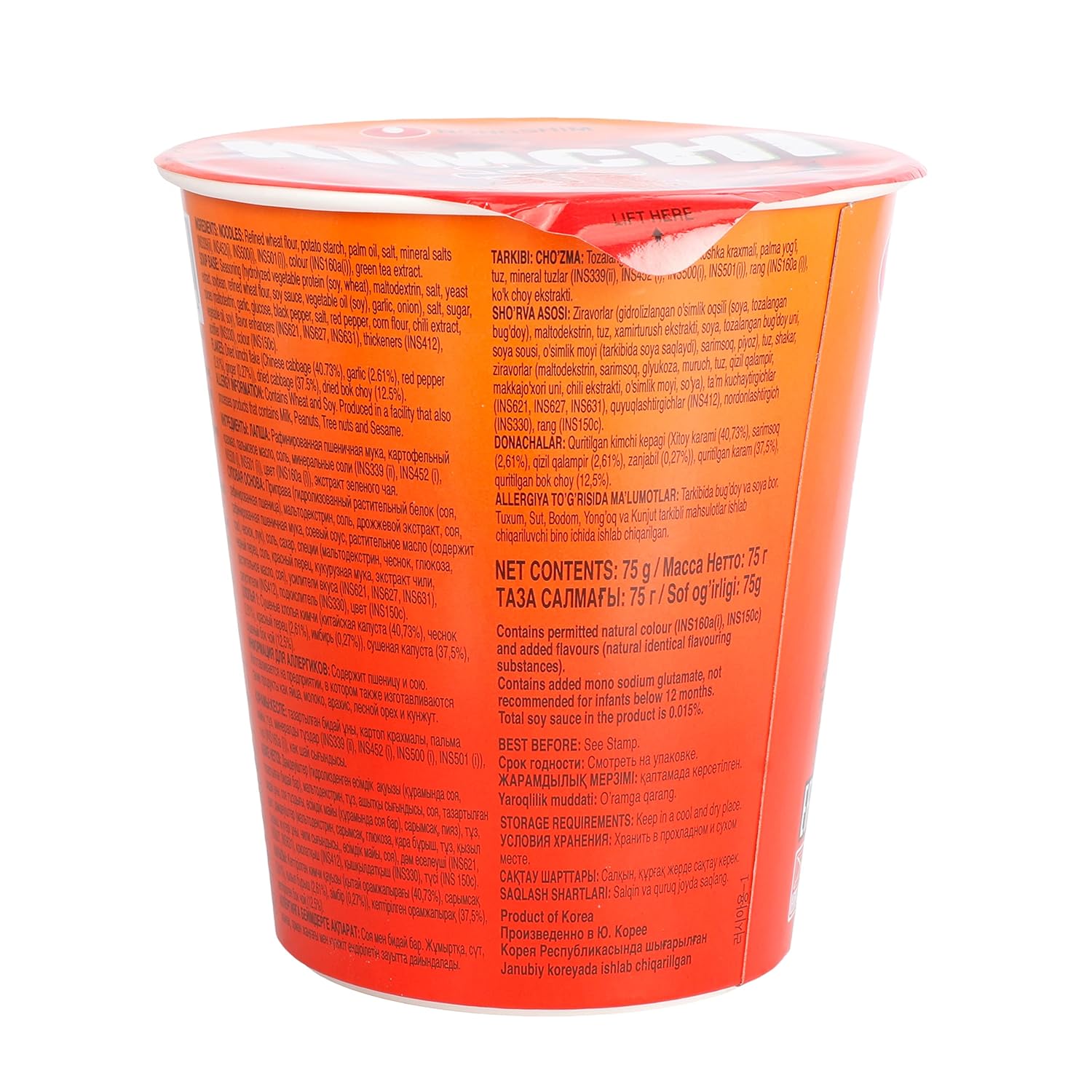 75g Size: Each cup typically contains 75 grams of noodles and seasoning, providing a single serving that's filling and satisfying.