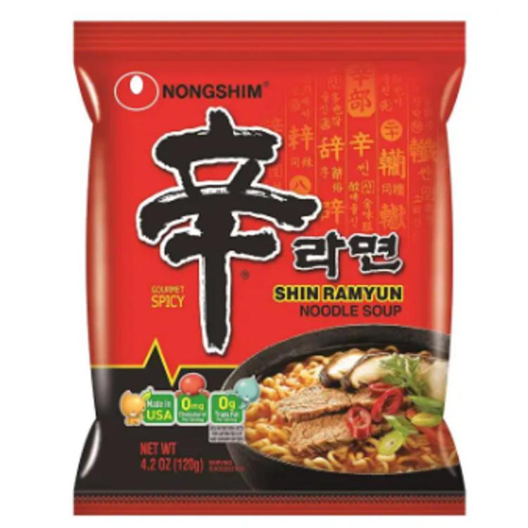 Nongshim Shin Ramyun Noodles Spicy PKT 120g: Nongshim Shin Ramyun Noodles Spicy in a 120g packet are renowned for their fiery kick and bold flavors. These instant ramyun noodles offer an intense and spicy taste experience that's perfect for those who crave heat in their meals. Savor the rich broth and chewy noodles for a satisfying and zesty bowl of ramyun.