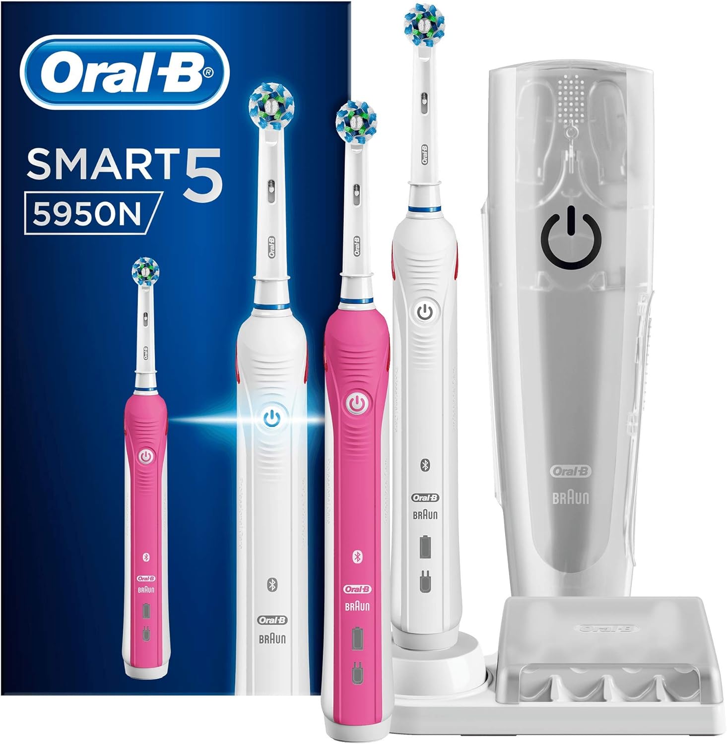 Introducing the Oral-B Smart 5 5950N Electric Rechargeable Toothbrush, the perfect companion for achieving a superior oral care routine. This advanced toothbrush harnesses the power of technology to deliver exceptional cleaning results. With its innovative pressure control and gum pressure sensor, it ensures gentle yet effective brushing, protecting your gums from potential damage. The round brush head adapts to the contours of your teeth, removing up to 100% more plaque than a manual toothbrush. Additionally, the built-in timer guides you to brush for the dentist-recommended two minutes. Equipped with Bluetooth connectivity, you can even pair it with the Oral-B app to track your brushing progress and receive personalized tips. Whether you're seeking a healthier smile or simply a refreshing clean feeling, the Oral-B Smart 5 5950N Electric Rechargeable Toothbrush offers unmatched performance and convenience.