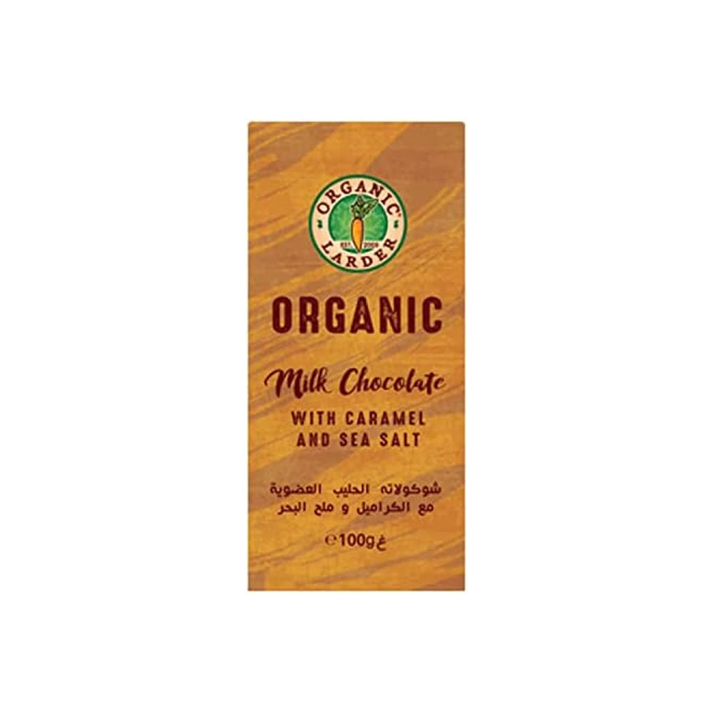 Organic Larder Chocolate Milk Caramel Sea Salt is a 100g bar of milk chocolate with the indulgent combination of caramel and sea salt for a delightful contrast of flavors.