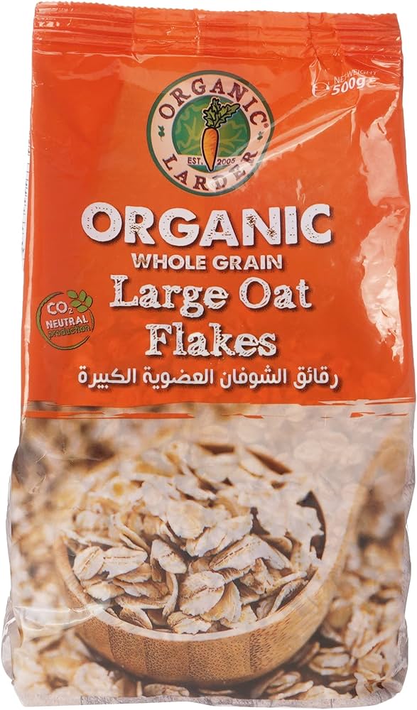 Organic Larder Organic Oat Large Flakes are high-quality organic oats that are recognized for their large and whole oat flakes. These oats are renowned for their purity and nutritional benefits, making them a popular choice for creating classic oatmeal, muesli, granola, and more.