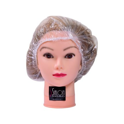 One size fits all.Product Material: Plastic.Color: Clear White.It can be used in many ways.Disposable shower caps.Disposable Clear Spa Hair Salon Home Shower Bathing Elastic Cap,Package includes: