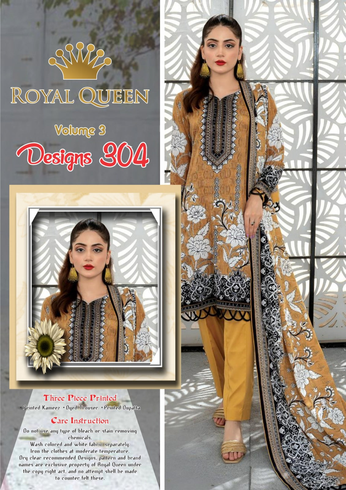 Pack Of 3 Royal Queen Women Unstitched 3 Piece Printed Suit