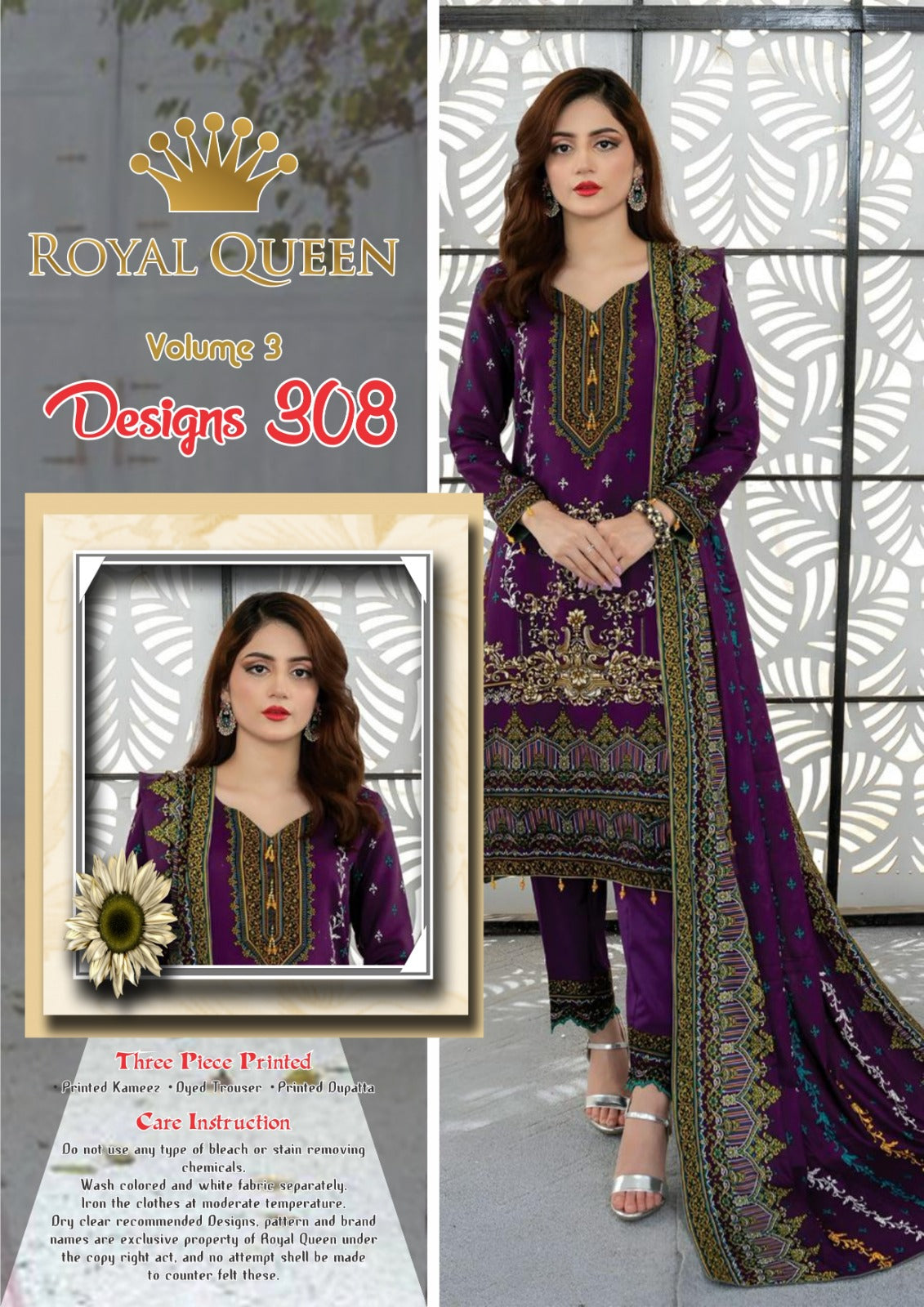 Pack Of 6 Royal Queen Women Unstitched 3 Piece Printed Suit