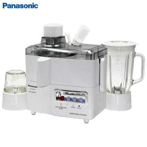 Prepare healthy and delicious juices with the Panasonic MJ-J176P Juicer. It is equipped with advanced features that make the cooking experience effortless. This Panasonic juicer is manufactured from a premium-grade material that allows prolonged use. It features a 2-speed setting with pulse that offers you optimum blending results. Also, the sharp stainless steel blades blend even the hard ingredients effortlessly. The four sealing lips prevent leakage and keep your kitchen worktop clean. Thanks to the detachable container base, this juicer is easy to clean and maintain. The patented self-ventilating inner cap ensures a safe operation. With the 1000ml clear glass container, this juicer allows you to prepare large portions of juices, purees, paste, and more. Its compact and lightweight profile makes it easy to move from one place to another. Also, it flaunts a stylish design that blends well with any modern-style kitchen decor.